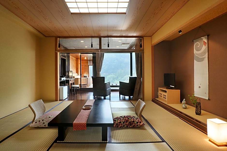 The family room includes a private bathroom, well-fitted with a bath, a shower, a bidet, a hairdryer and slippers. The air-conditioned family room provides a flat-screen TV, tatami, a tea and coffee maker, a safe deposit box as well as mountain views. The unit offers 4 futons.